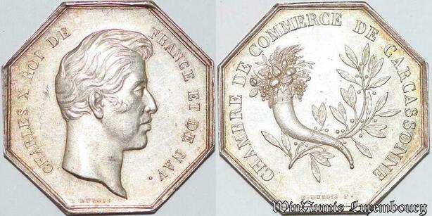 S6056 Rare France Jeton Token Charles X Chambre Commerce Carcassonne Dubois SUP Argent