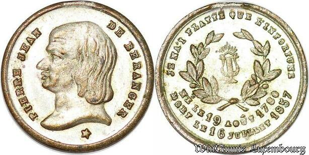 S6066 France Médaille Jean Beranger Né 19 Août 1780 Mort 16 Juillet 1857