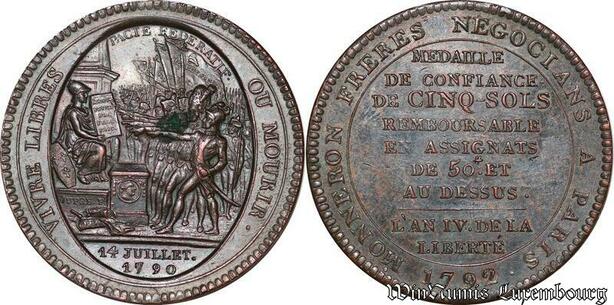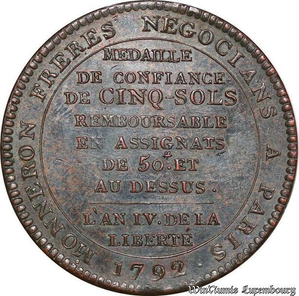 S6118 France Constitution cinq sols de Monneron au serment 1792 Birmingham SUP ++ !