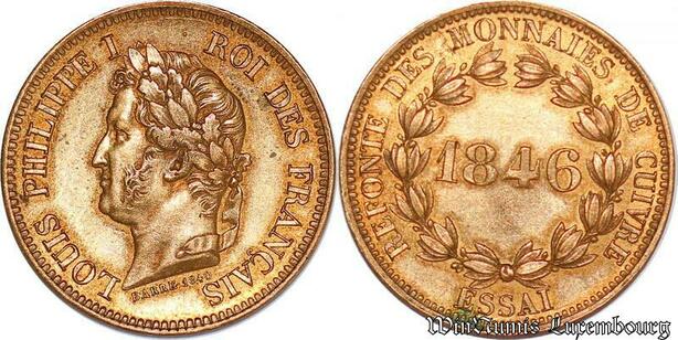 S6126 France essai 5 Centimes Louis-Philippe I 1846 reFonte monnaies cuivre Paris