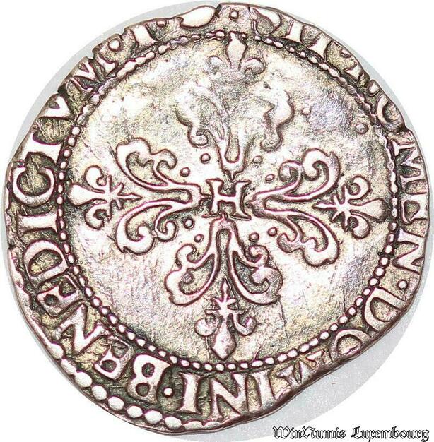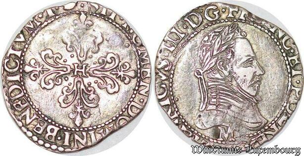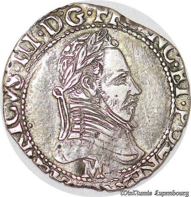 S6175 Très Rare 1/4 FrancCol plat Henri III M Toulouse Roi ligue 1592 Argent