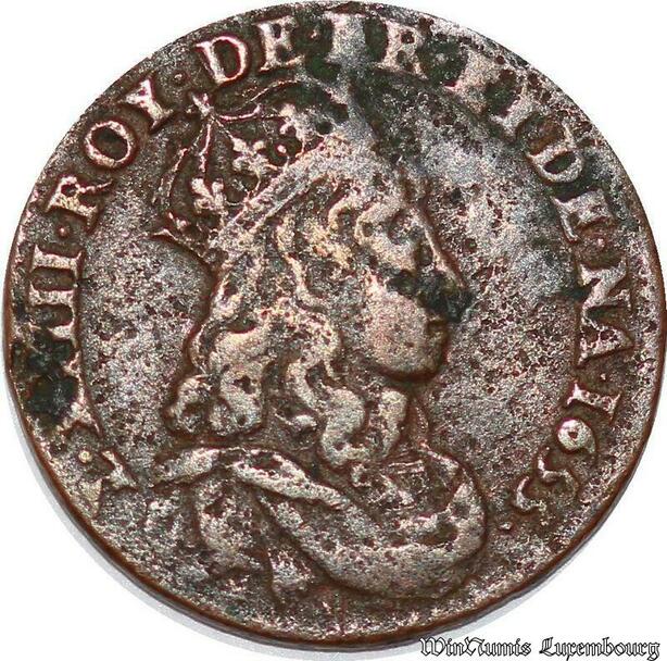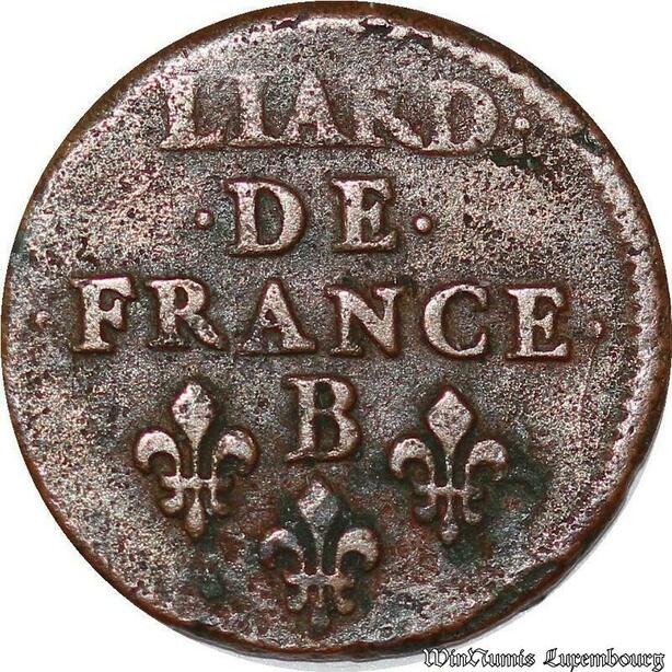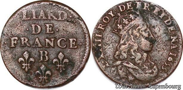 S6181 Louis XIV Liard au buste juvénile 1655 B Pont-de-l'Arche ->Faire Offre