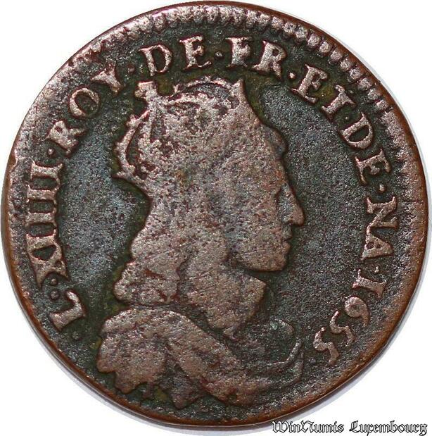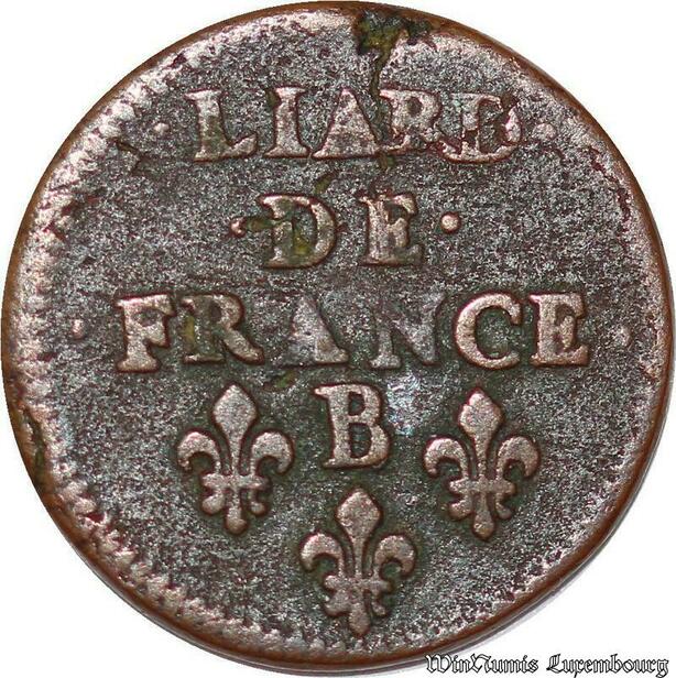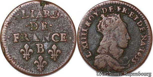 S6182 Rare Louis XIV liard cuivre 2e type 1655 B Pont-de-l'Arche poids lourd !