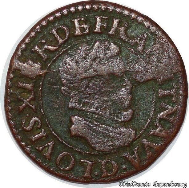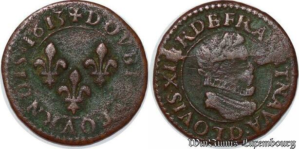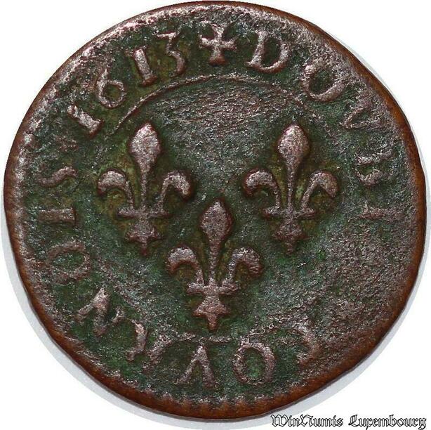 S6188 Rare Louis XIII double tournois 1er type 1613 D Lyon ->Faire Offre