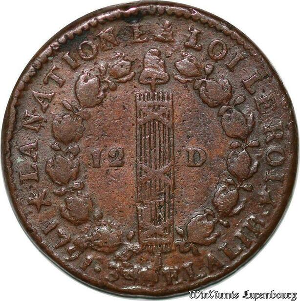 S6210 Rare Constitution 12 deniers Louis XVI François 1791 MA coin coqué O