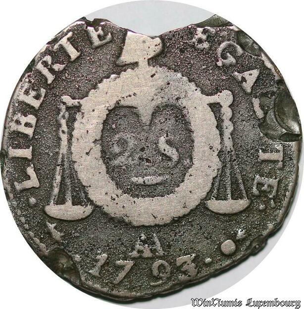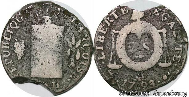 S6216 Rare 2 sols aux balances 1792 AA Metz Metal de Cloche an 4 ->Faire Offre