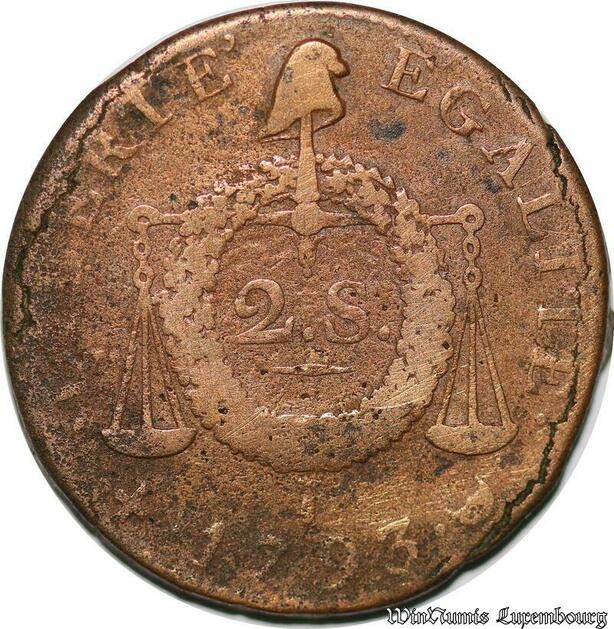 S6217 Rare Convention 2 sols aux balances 1793 I Limoges ->Faire offre