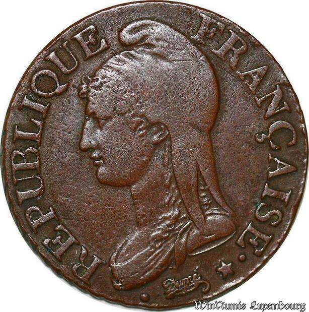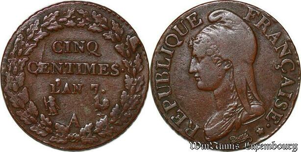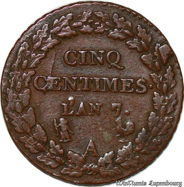 S6232 Rarissime 5 Centimes Dupré 7/5 A Paris Refrappe du Décime AU53 !