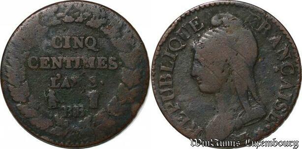 S6235 Rare 5 Centimes Dupré an 8/5 BB Strasbourg ->Faire Offre