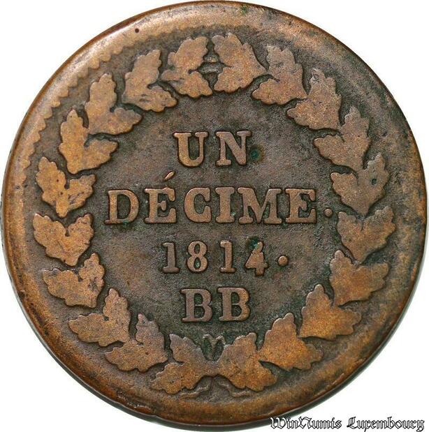 S6238 Un Décime à N couronnée1814 . . ->Faire Offre