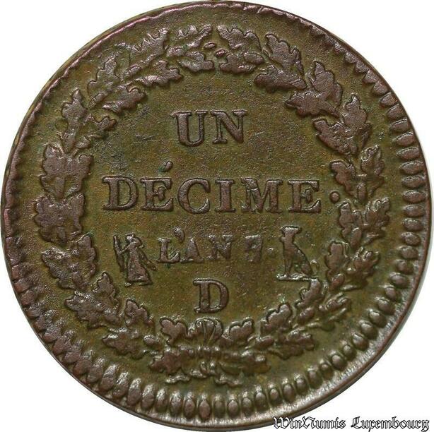 S6242 Rare Un Décimé Dupré An 7/5 D Lyon TTB 48 /50 ->Faire Offre