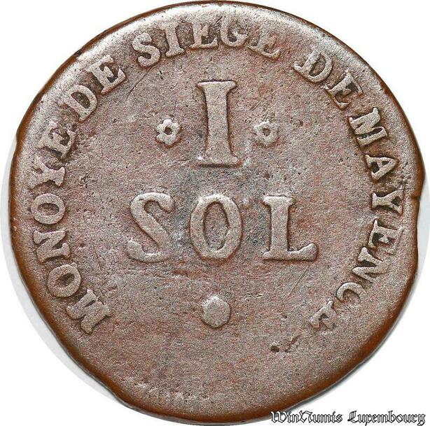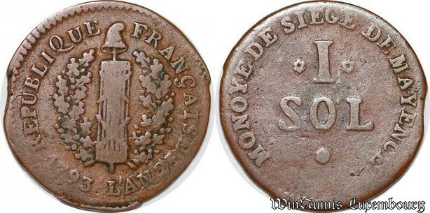 S6250 Convention Allemagne siège de Mayence 1 sol 1793 an 2 ->Faire Offre