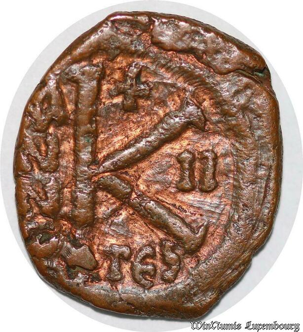 S6266 Byzantine Empire Justin II 565-578 Æ Half Follis Thessalonica mint