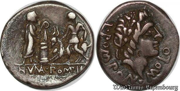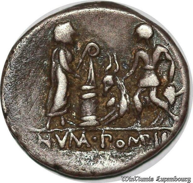 S6290 Roman Empire Rare Denier Pomponius Molo AR denarius Rome 97 BC •Pompon•Molo Silver