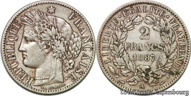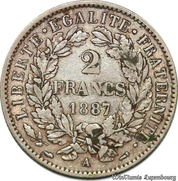 S6328 2 Francs Ceres 1887 A Paris Argent Silver ->Faire Offre
