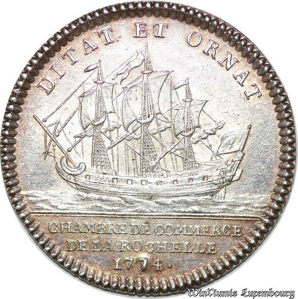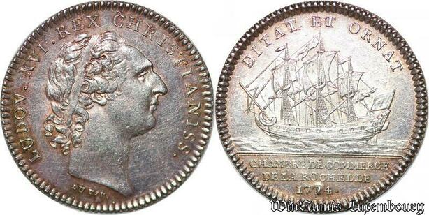 S6397 Portrait Jeton Louis XV Chambre CommerceLa Rochelle 1774 Argent SPL !