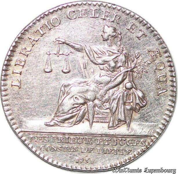S6406 Rare Jeton Louis XV Normandie Chambre CommerceDieppe 1758 Argent SUP !