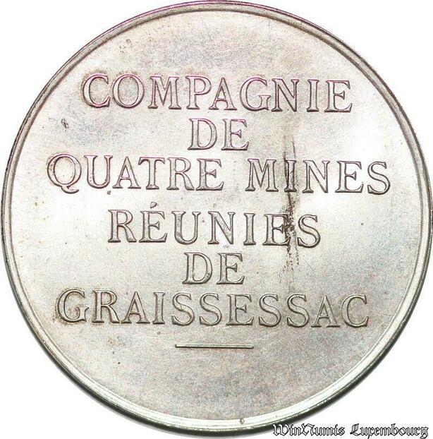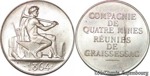 S6424 Rare Jeton Token Mines Graissessac Hérault 1864 Argent 500 ex. FDC !