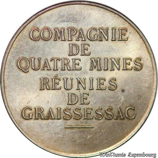 S6426 Rare Jeton Token Mines Graissessac Hérault 1864 Argent 500 ex. FDC !