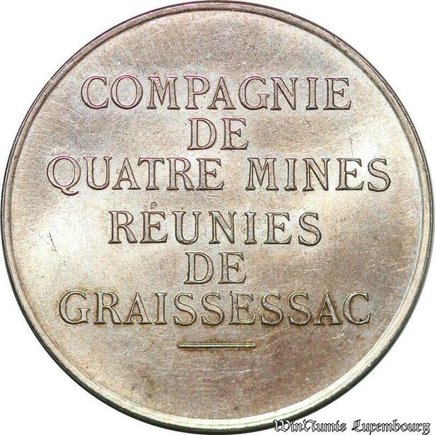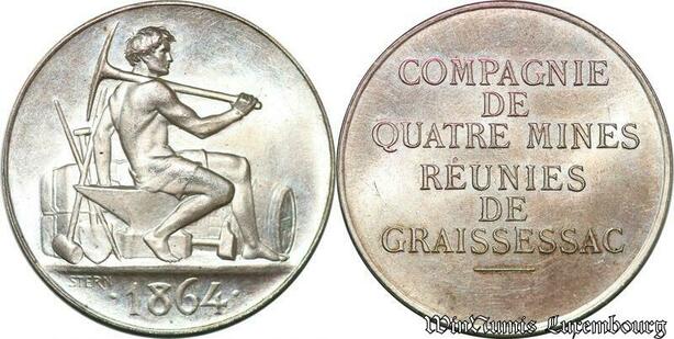 S6427 Rare Jeton Token Mines Graissessac Hérault 1864 Argent 500 ex. FDC !