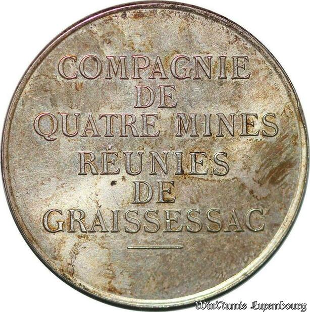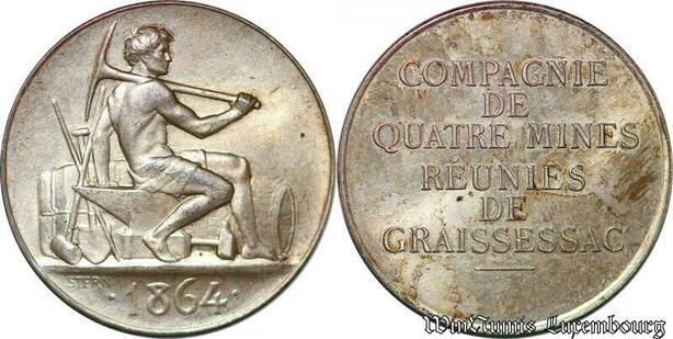 S6429 Rare Jeton Token Mines Graissessac Hérault 1864 Argent 500 ex. FDC !