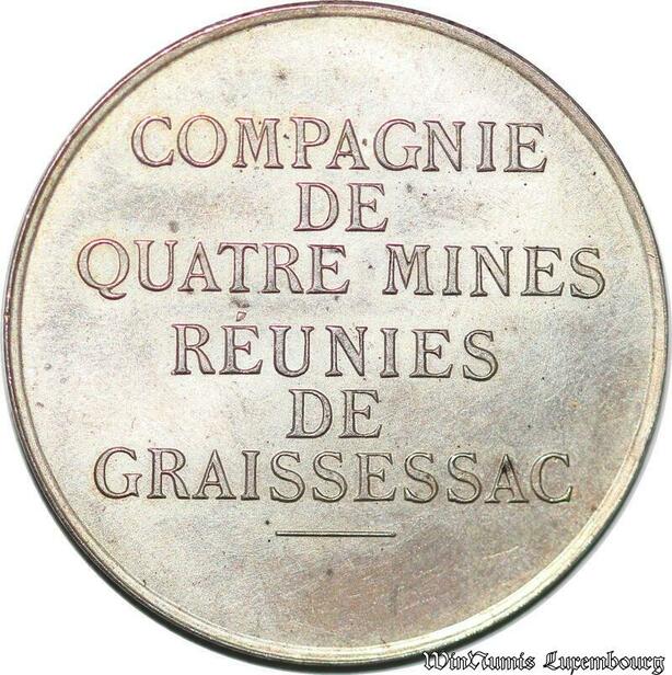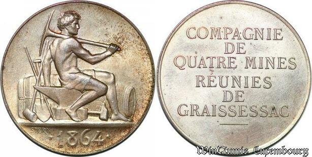 S6431 Rare Jeton Token Mines Graissessac Hérault 1864 Argent 500 ex. FDC !