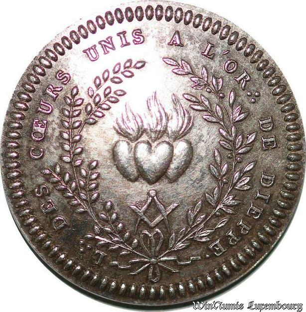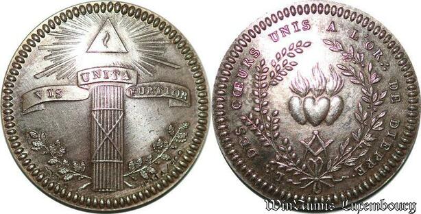 S6457 Rare Jeton Maconique FrancsMacons Orient Paris cœurs unis Silver SUP