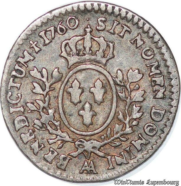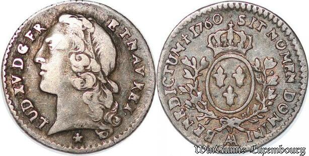 S6502 Rare Louis XV 1715-1774 1/20 écu au bandeau 1760 AA Metz Argent Silver