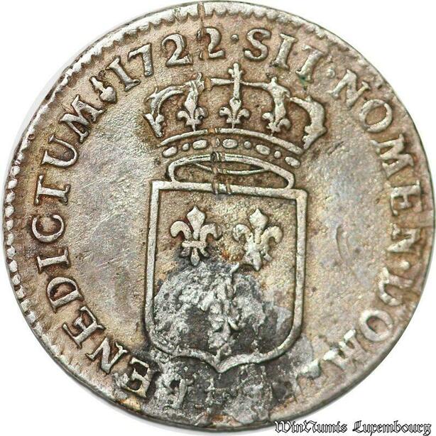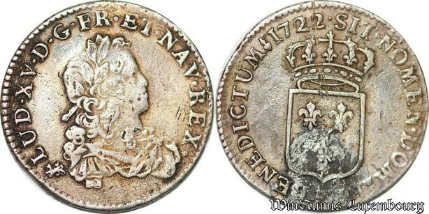 S6504 Rare Louis XV 1715-1774 1/3 d'écu de France 1722 T Nantes Argent Silver