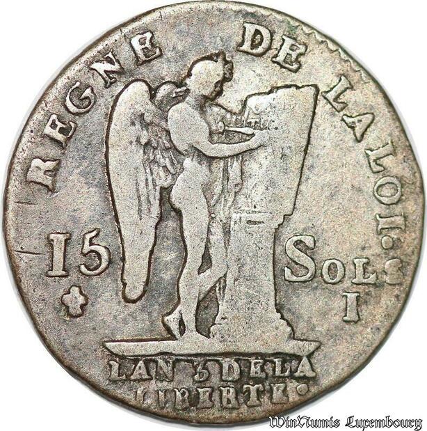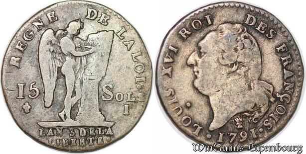 S6527 Constitution 15 sols type François 1791 I Limoges 2ème sem Argent