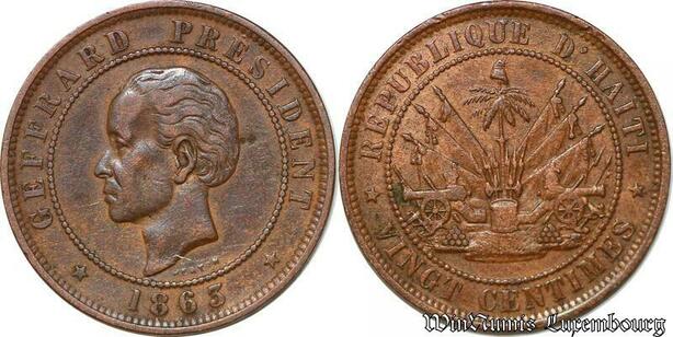S6542 Haiti 20 Centimes Nicholas F. Geffrard President Heaton Birmingham 1863
