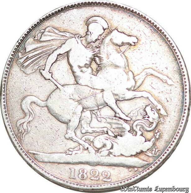 S6561 UK Great Britian Crown 1822 KING GeorgeIV Silver Tertio Edge
