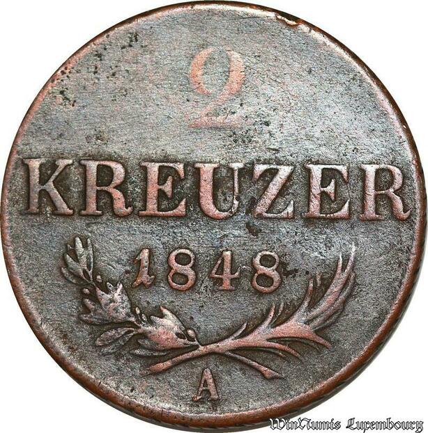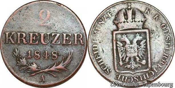 S6565 Autriche Austria Haus Habsburg 2 Kreuzer Franz Joseph I 1848 A