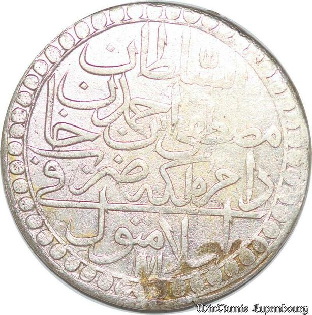 S6626 Turkey 2 Zolota 1171 AH/9 60 Para Mustafa III 1757 1774 Silver AU SUP