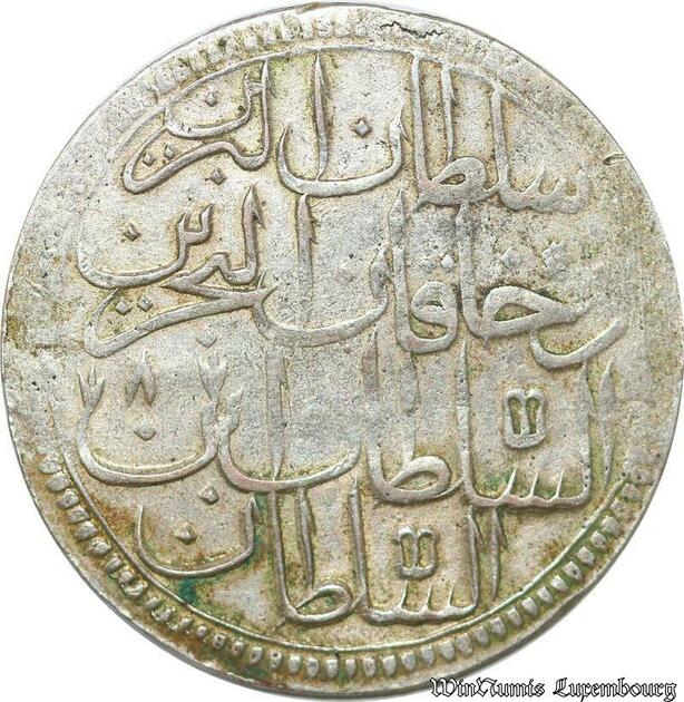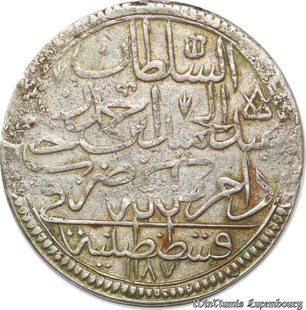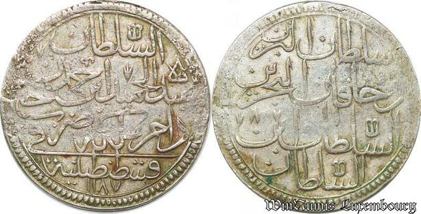 S6629 Turkey 2 Zolota 1187/8 Abdul Hamid I Constantinople Silver AU SUP !