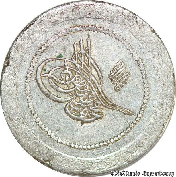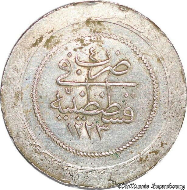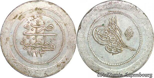 S6646 Turkey 5 Kurush Mahmud II 1223/4 Constantinople Silver AU SUP