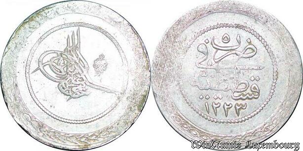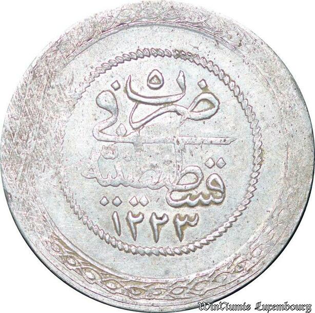 S6647 Turkey 5 Kurush Mahmud II 1223/5 Constantinople Silver AU SUP