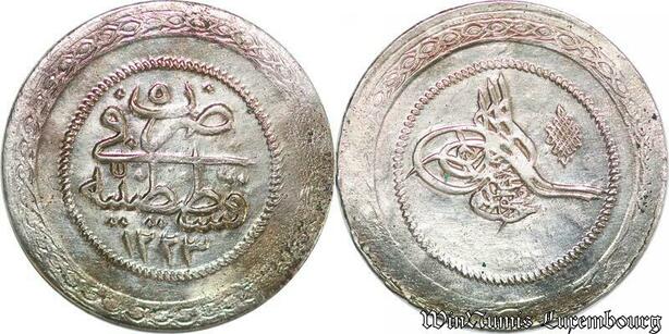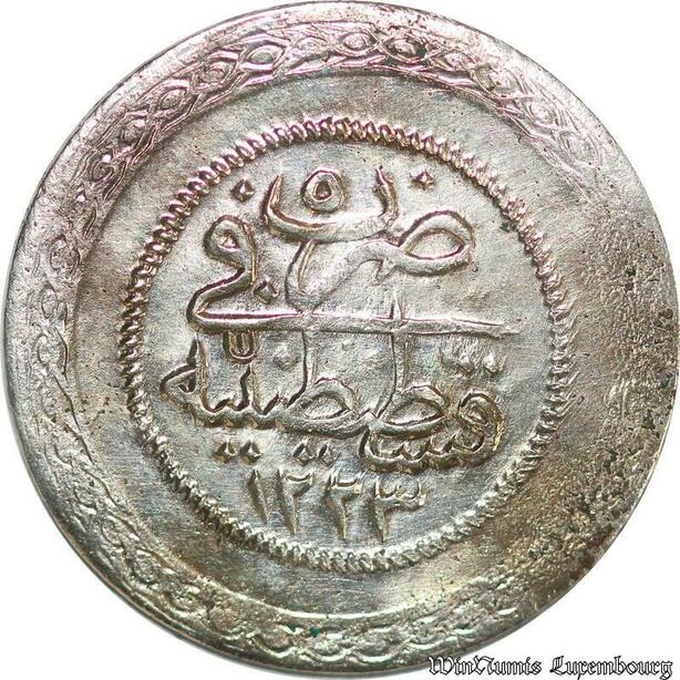 S6648 Turkey 5 Kurush Mahmud II 1223/5 Constantinople Silver AU SUP
