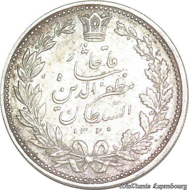 S6669 Iran 5000 Dinars Muzaffar al-Din Shah Silver AH1320 1902 ->Make offer