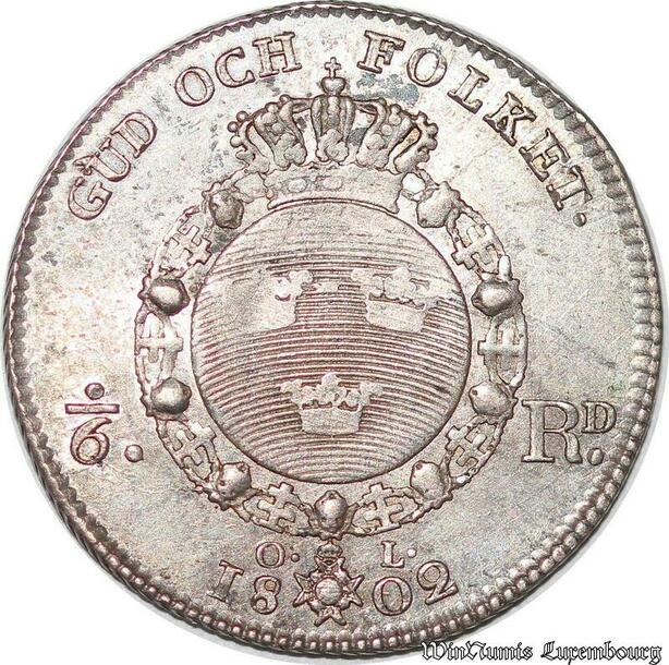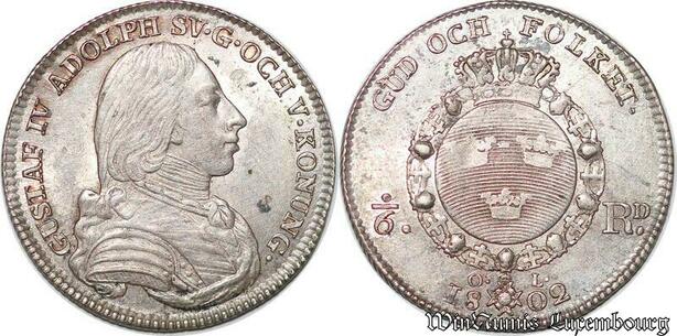 S7287 Schweden 1/6 Riksdaler 1802 Gustav IV. Adolf Silver ->Make offer