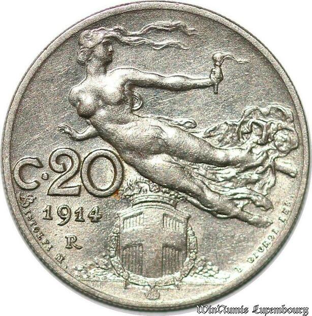 S7776 ltaly 20 Centesimi Liberta Roma Vittorio Emanuele III 1914 Libertà FDC